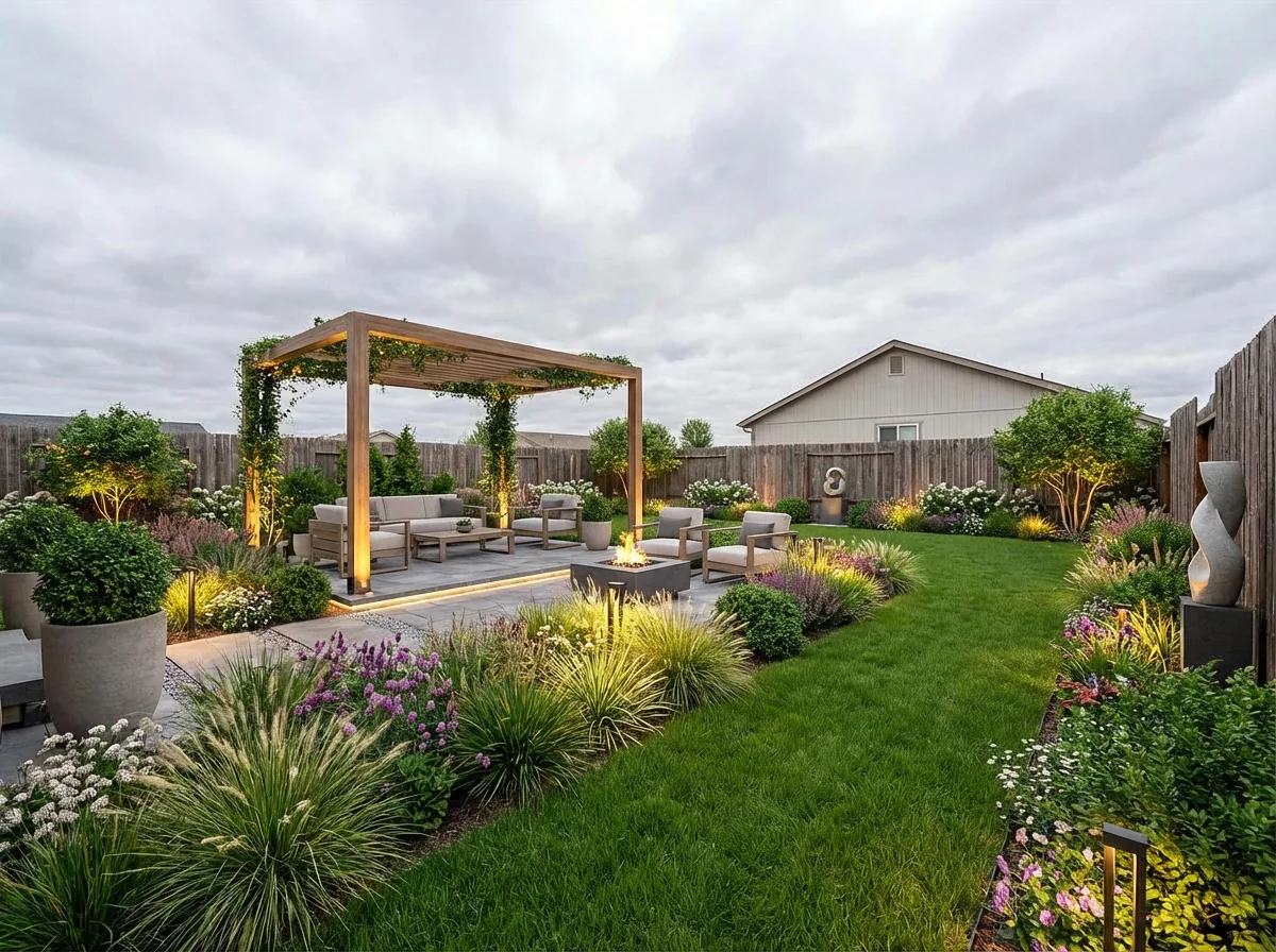 Empty backyard transformed into modern garden